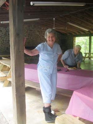 Once group photos were done, the party was on in the pavilion. Putting the chairs away made an instant dance floor ... and the music, food, and cake flowed freely!